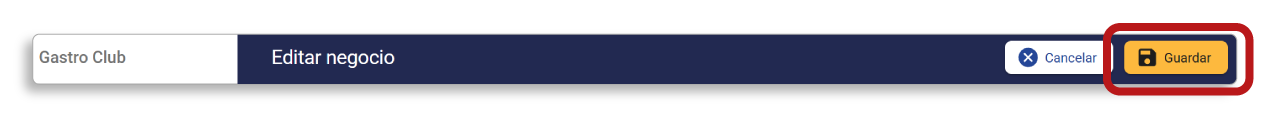 Si pulsas sobre Cancelar volverás a la pantalla de información del negocio pero perderás todos los cambios que has realizado.