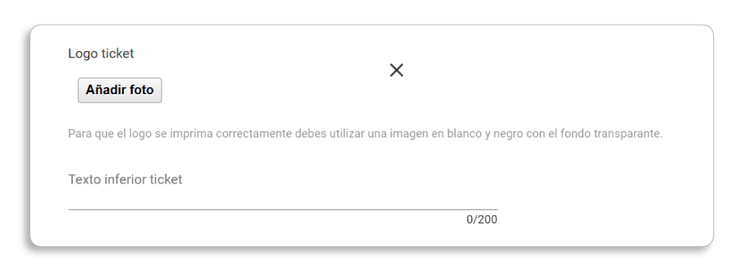 Esta sección te permite añadir el logotipo de tu negocio para que aparezca en el ticket.