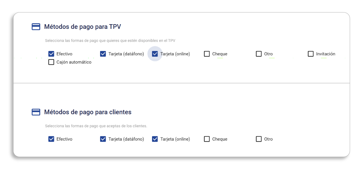 En esta sección podrás elegir y configurar los métodos de pago con los que quieres trabajar.