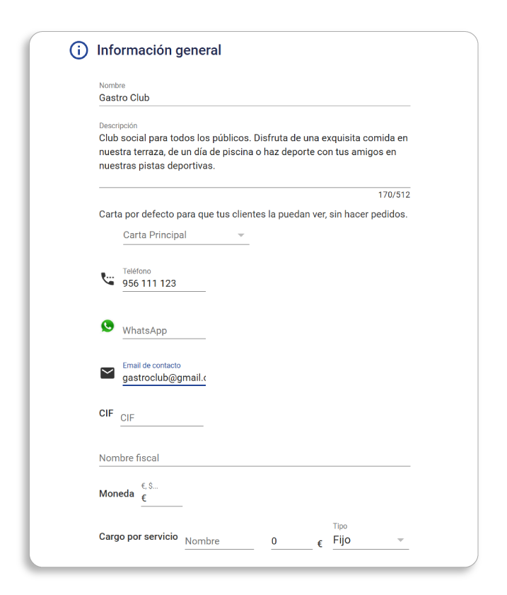 En esta sección podrás añadir los datos más importantes para que puedan encontrar tu negocio.