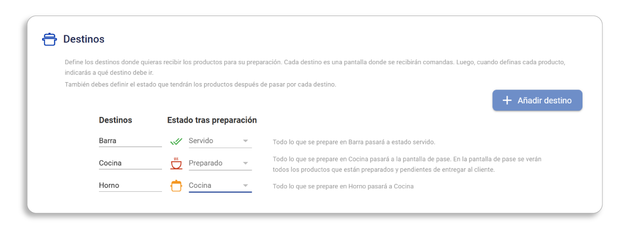 Puedes establecer que distintos productos vayan a distintos destinos (o cocinas).