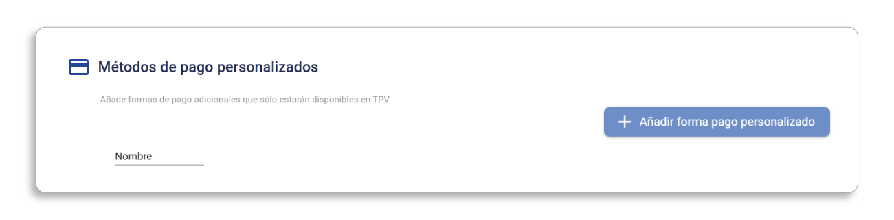 En esta sección podrás añadir distintos métodos de pago para utilizar en Sipos TPV a la hora de cobrar un pedido.